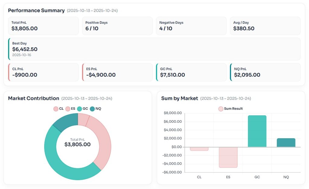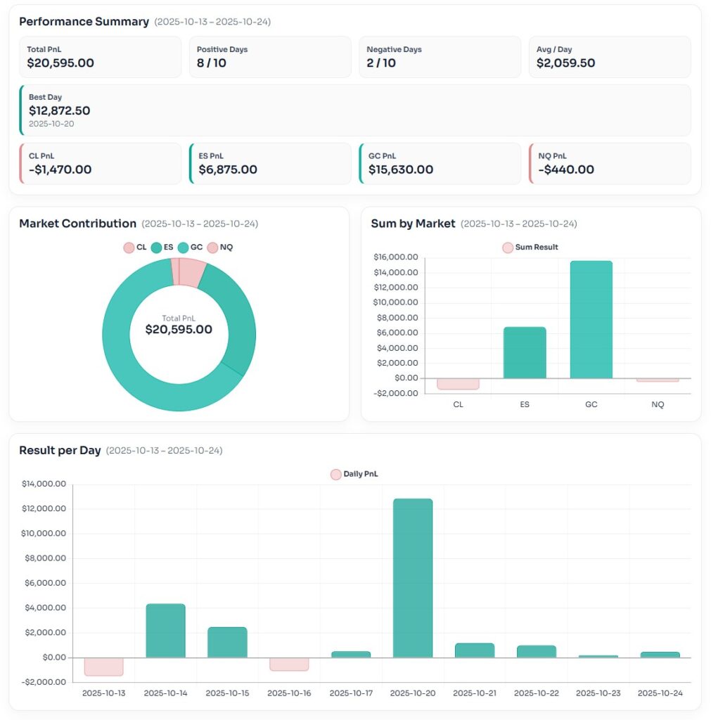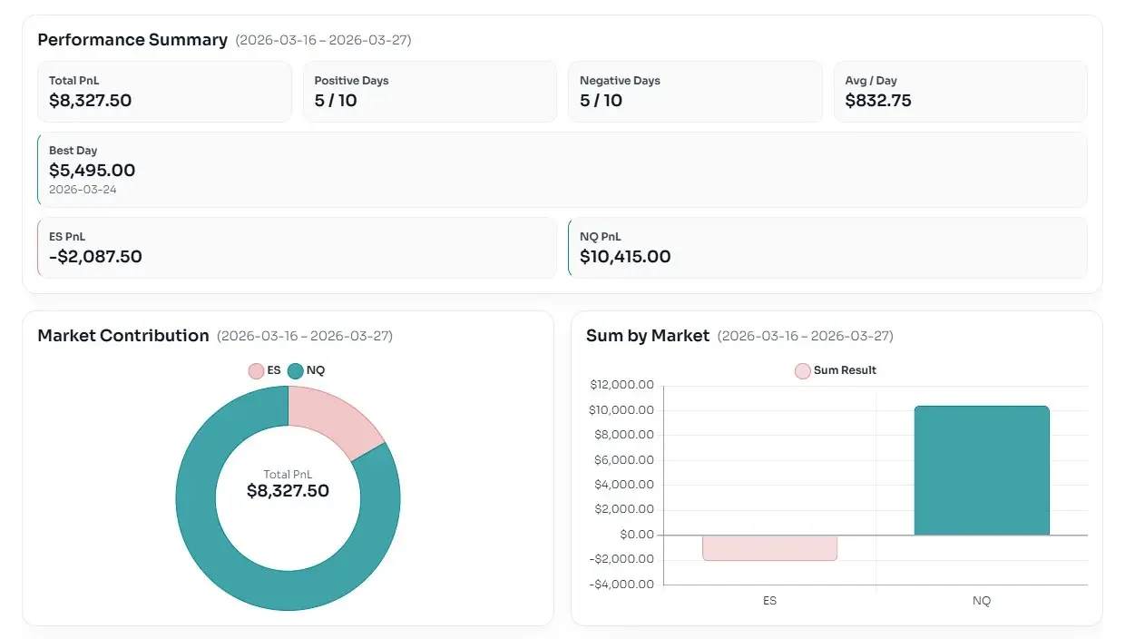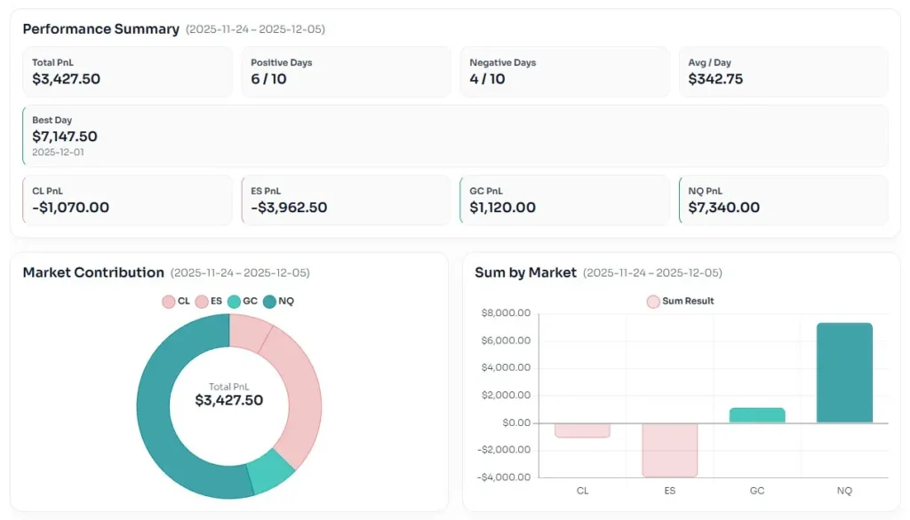 Instantly analyze and visualize your NinjaTrader performance with detailed stats, charts, and reports that reveal your real trading edge.