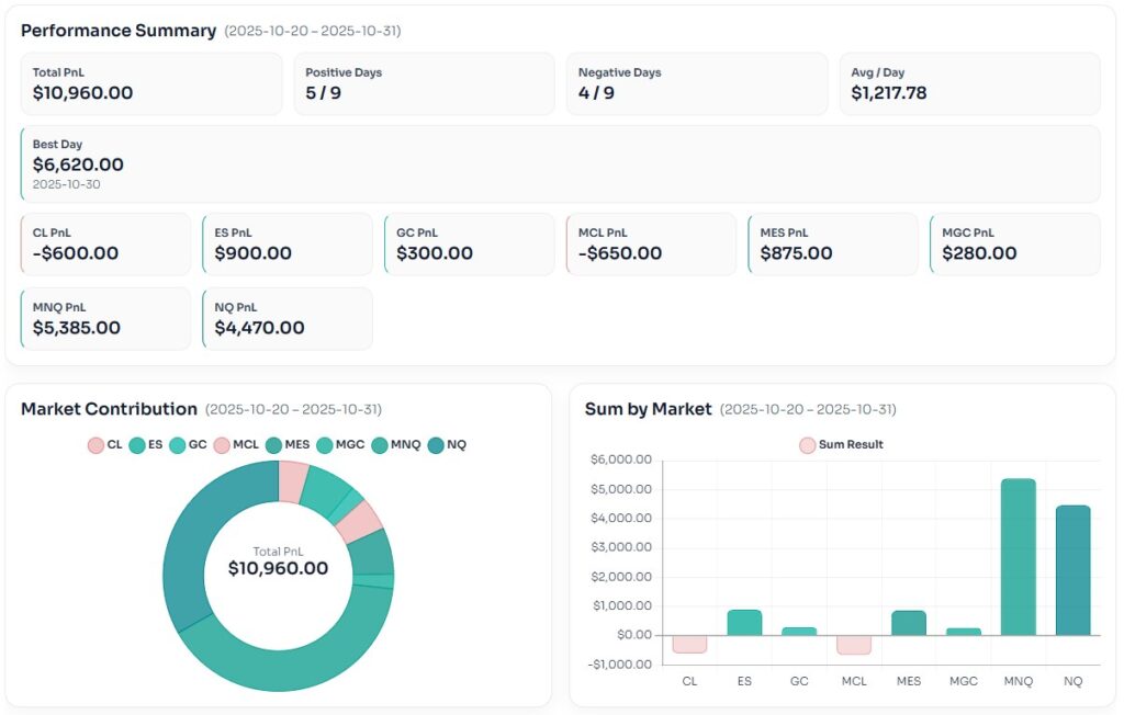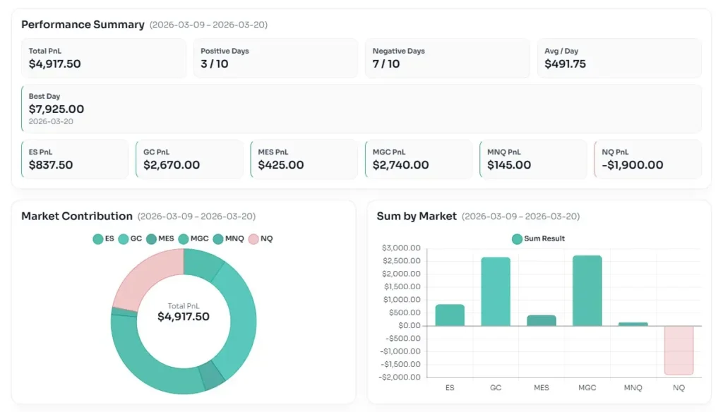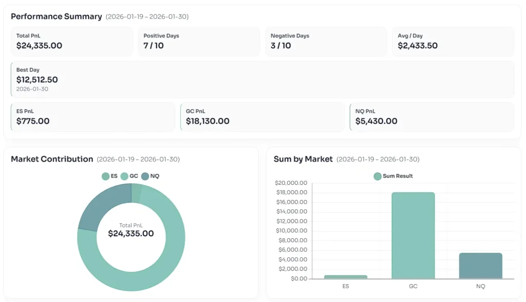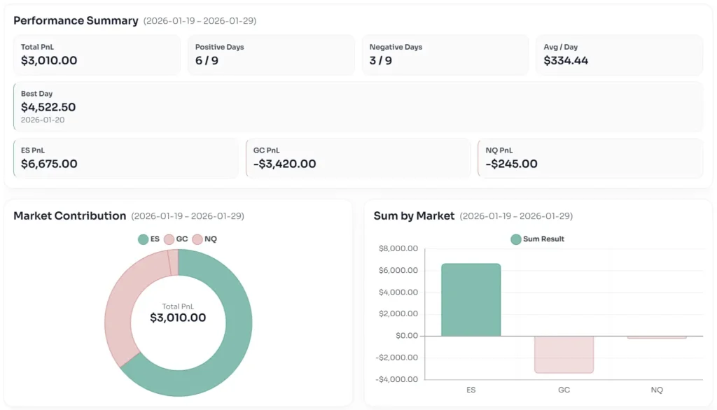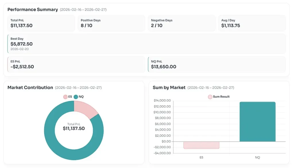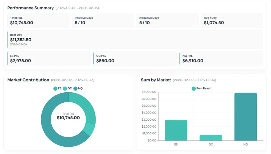 Instantly analyze and visualize your NinjaTrader performance with detailed stats, charts, and reports that reveal your real trading edge.