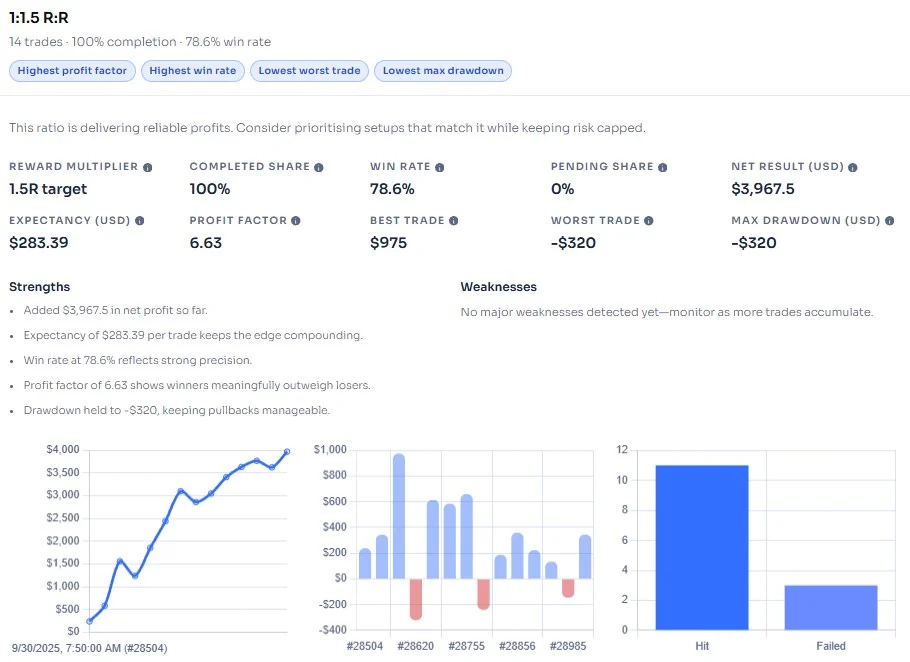 Instantly score your NinjaTrader setups, expose the strongest reward multipliers, and know exactly where to focus for sharper execution.