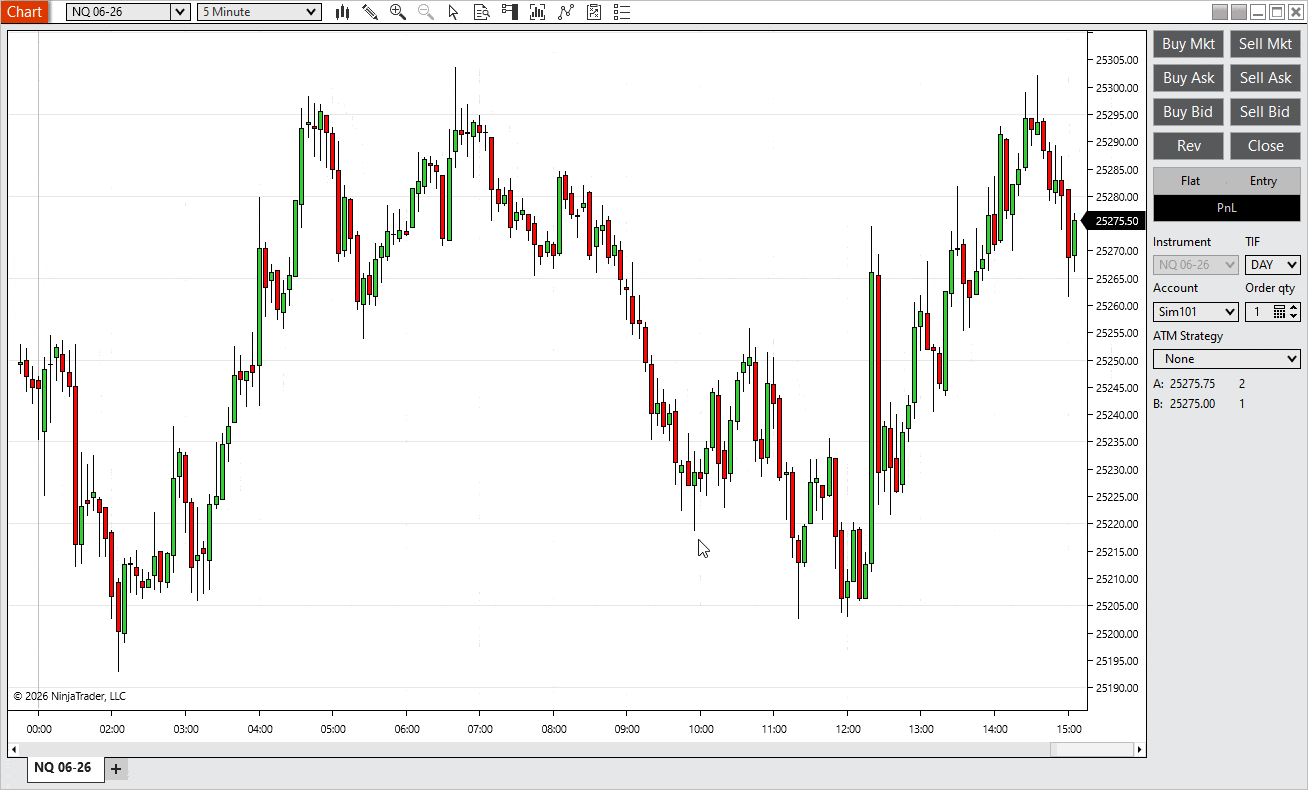 Place and manage trades directly from the chart with a single click. No hotkeys or complex commands—just fast, intuitive order execution built for NinjaTrader 8.