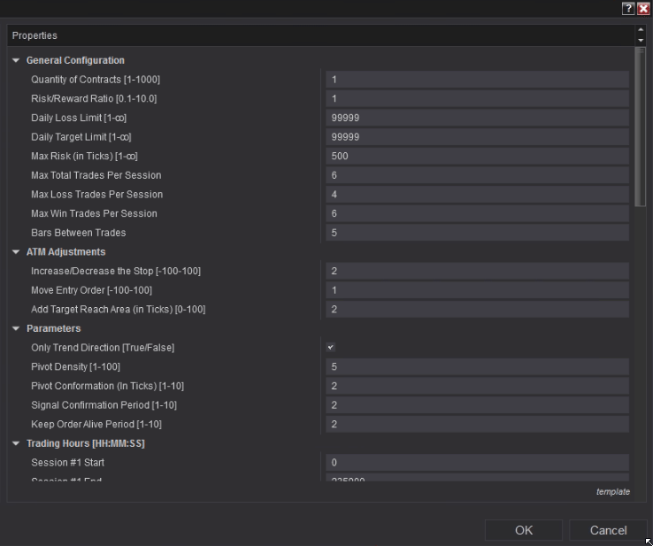 The Reversal Strategy includes a flexible set of parameters so you can adapt it to different markets, times of day, and risk preferences. Understanding these options is critical for aligning the system with your trading goals.
